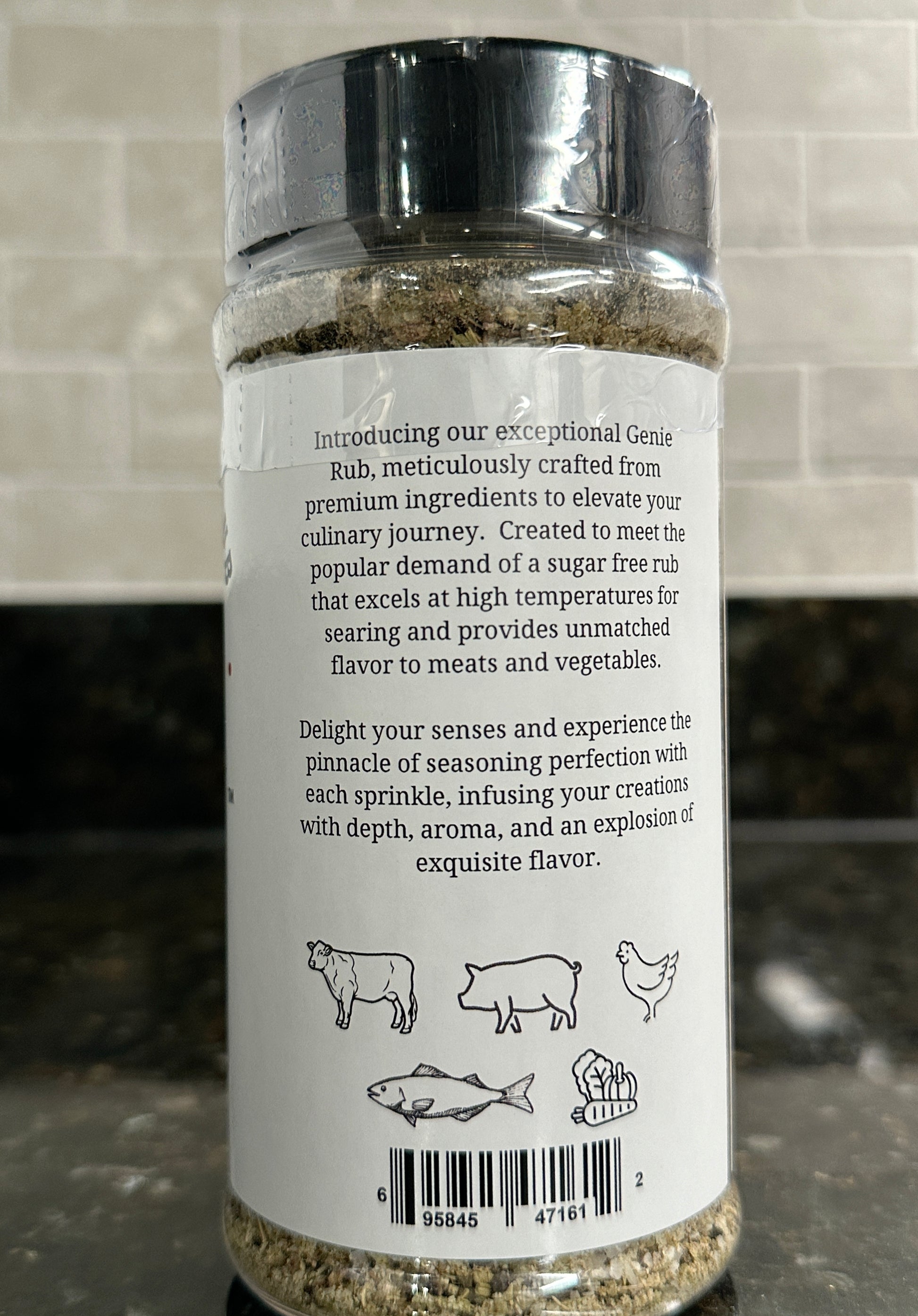 The Genie Rub, meticulously crafted from premium ingredients to elevate your culinary journey. Created to meet the popular demand of a sugar free rub that excels at high temperatures for searing and provides unmatched flavor to meats and vegetables.